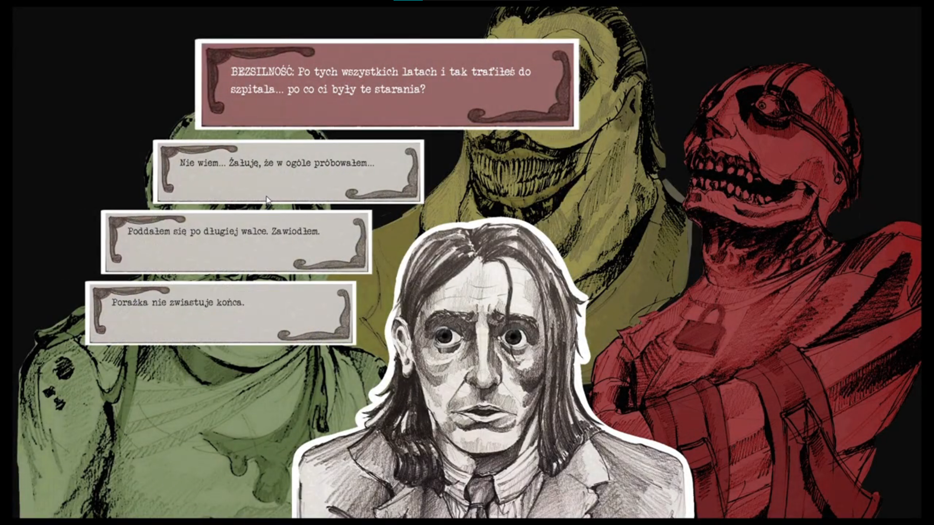 You are a man overwhelmed by his own traumatic memories. To fight off intrusive thoughts, you move through your memories and sort out the tangled fragments of your mind.